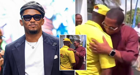 A touching moment has gone viral, showcasing Cameroonian football icon and President of the Cameroonian Football Federation, Samuel Eto’o, as he recognizes a former teammate who is now a security guard.